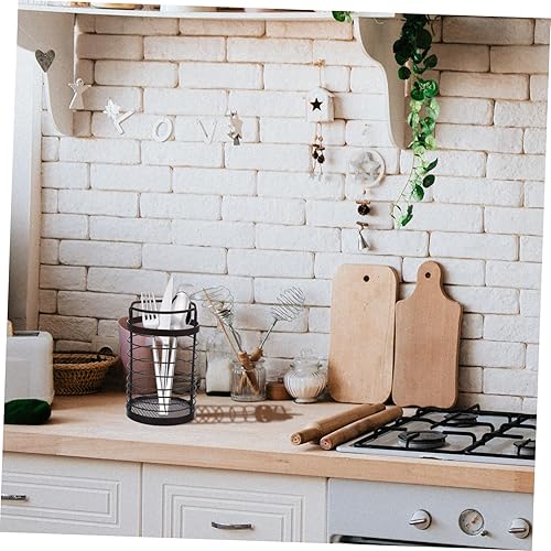 HOMSFOU Porte- Porte-ustensiles En De Fer Porte-ustensiles De Comptoir Pot à Ustensiles Porte Couvert Porte-ustensiles Noir Titulaire De Largenterie Porte-paille Ménage Le Fer