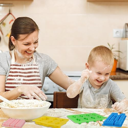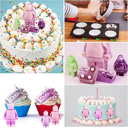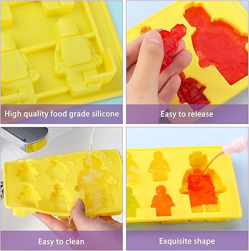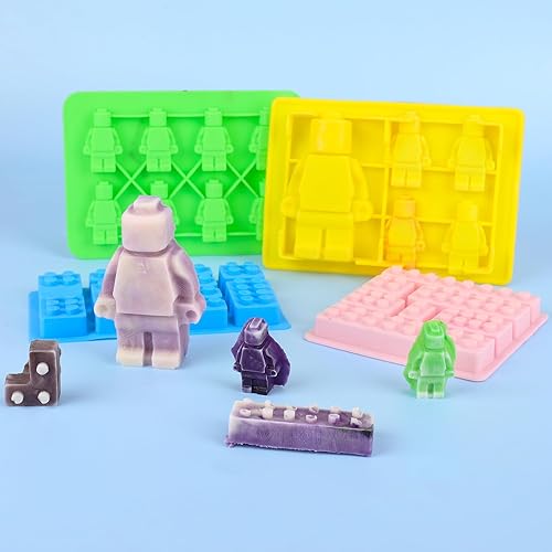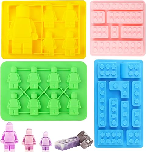 Bestomrogh Lot de 4 moules en silicone pour robots de construction, blocs de construction, moules à chocolat, bacs à glaçons en silicone, moules à bonbons en silicone pour gâteaux, gelées, chocolats,