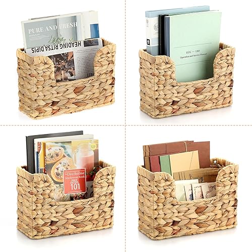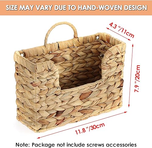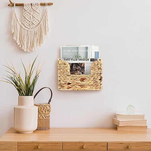 TOLIDA Panier mural naturel en jacinthe d'eau - Panier de rangement décoratif pour mur ou porte - En jonc de mer - Étanche - Pour lettres, factures, magazines, fleurs