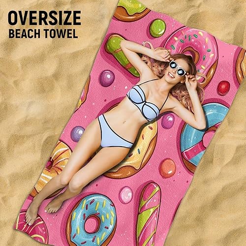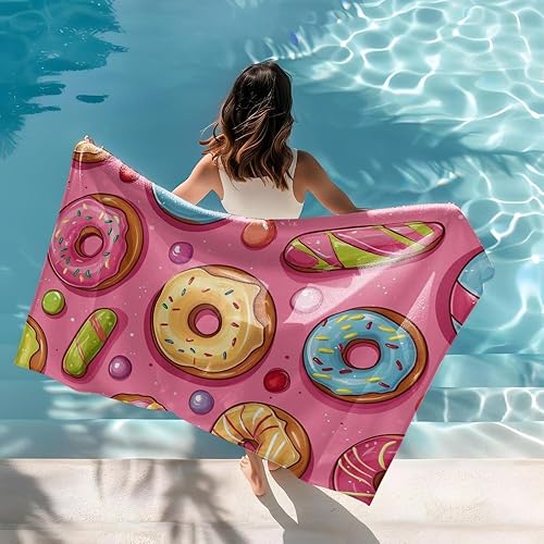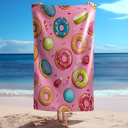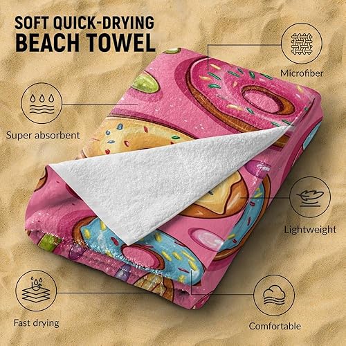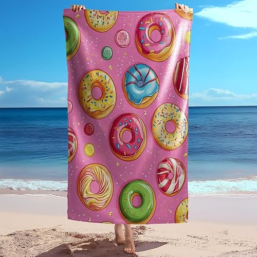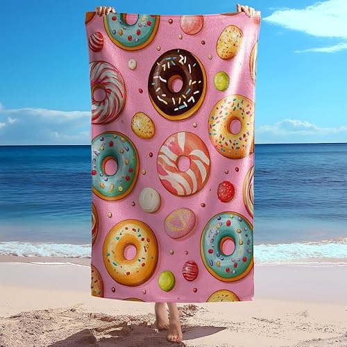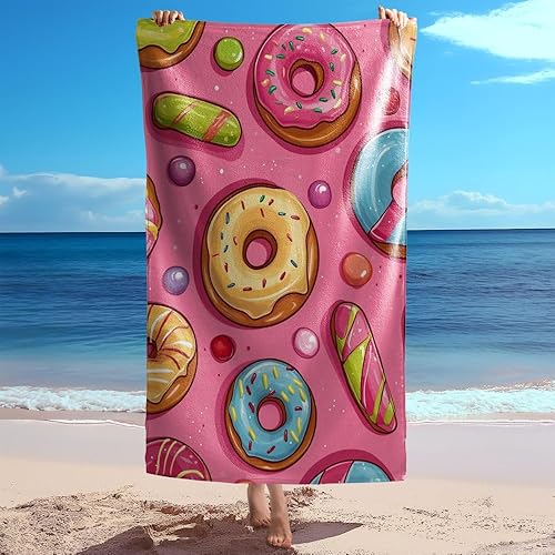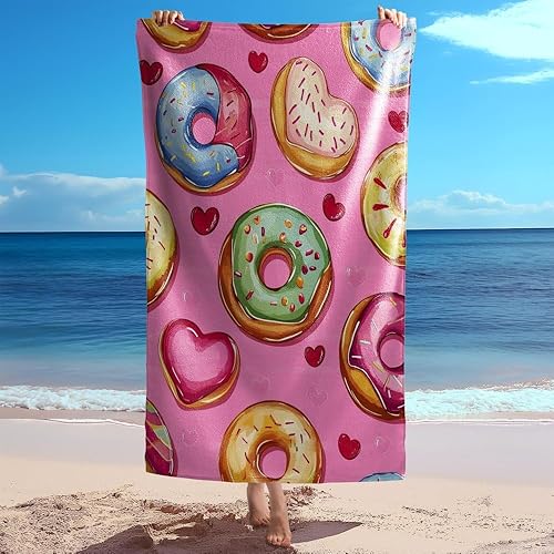 LZOQOWUJ Serviette de plage 3D en forme de beignet en forme de cœur – Serviette de plage en microfibre avec imprimé dessert mignon pour filles, grande serviette de voyage anti-sable (style 2, 140 cm x