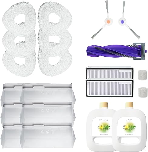 NARWAL Freo X Ultra Kit accessoires : 6 lingettes, 2 brosses, 1 brosse anti-enroulement, 2 filtres HEPA, 6 sacs, 2 solutions, 2 filtres