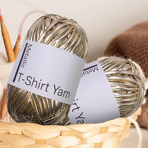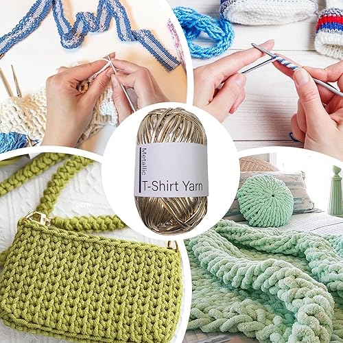 Fil métallique pour T-shirt, 130 m de long - Fil métallique pour crochet, tricot tendance et brillant - Pour débutants, loisirs créatifs, sacs et couvertures