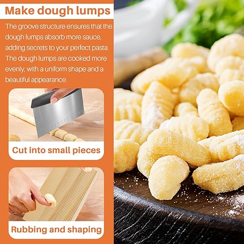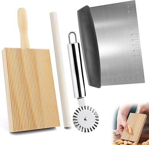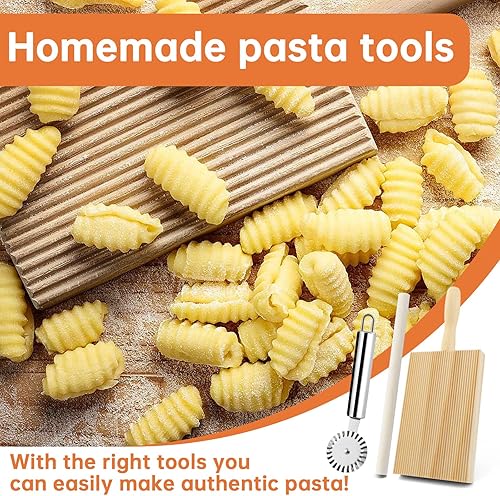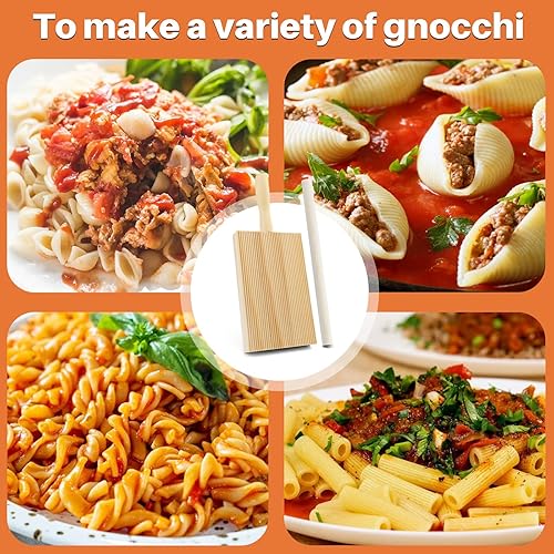 GZcaiyun Gnocchi Planche à pâtes en bois avec bâtonnets en bois, planche à pâtes pour la fabrication de gnocchi en forme de nouilles, avec roue de découpe de pâtes et carte à pâte