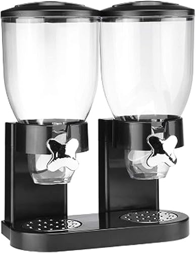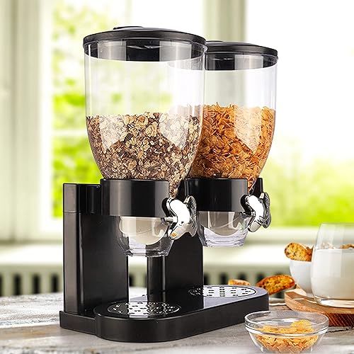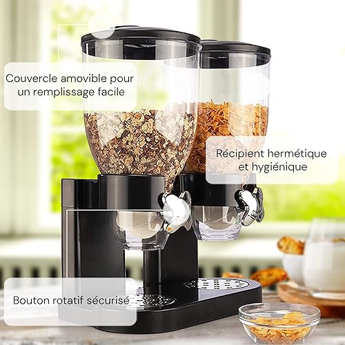 SMARTWEB Double distributeur de céréales | Distributeur de cornflakes pour le petit déjeuner | Récipient à céréales avec bouton rotatif pour le garde-manger de la cuisine, noir