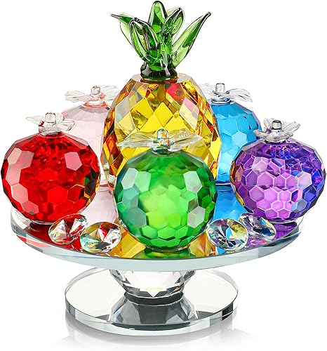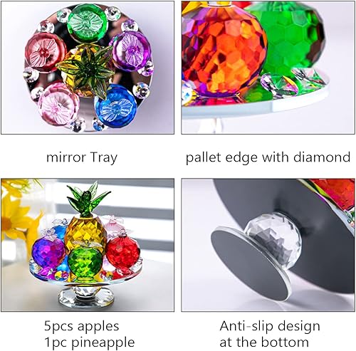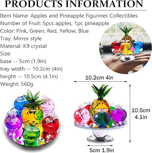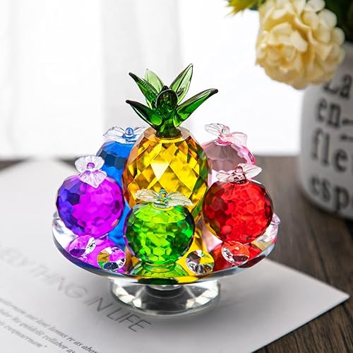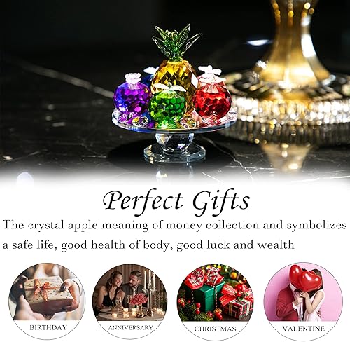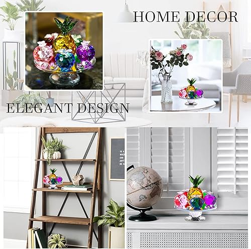 QFkris Figurines de collection en cristal à facettes en forme de pomme et d'ananas, presse-papier en verre avec base pour décoration de table de maison