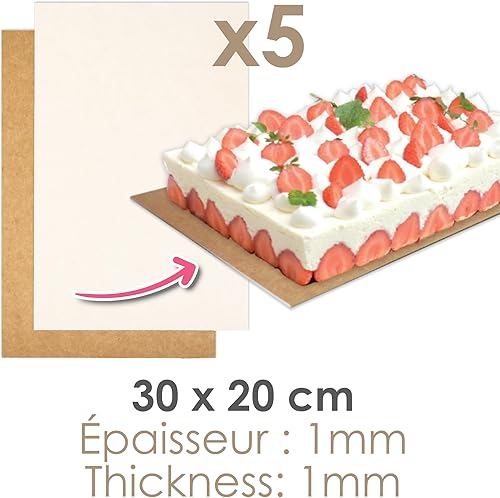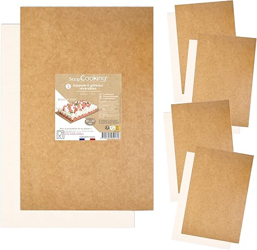 SCRAP COOKING ScrapCooking - 5 Supports à Gâteaux - 30 x 20 cm - Carton Réversible Kraft & Blanc - Semelles Gâteaux Rectangulaires -Cake Board Pâtisserie - Fabriqués en France - 5216