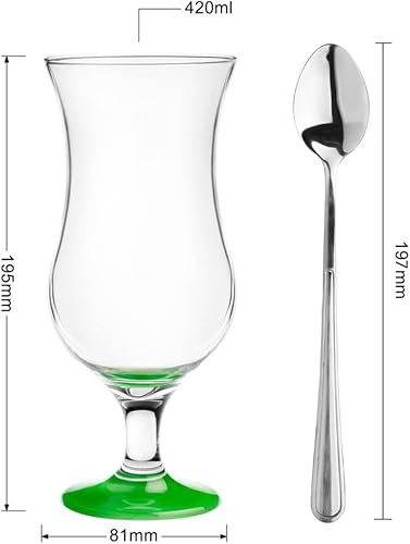 Glasmark A570032-0420-5183_20LD A570032-0420518320LD Lot de 6 verres à cocktail max. 480 ml Vert Bottom + cuillère à café longue, verre + acier inoxydable