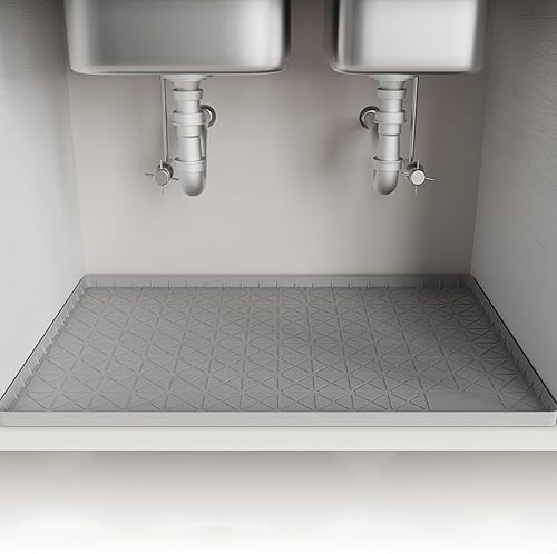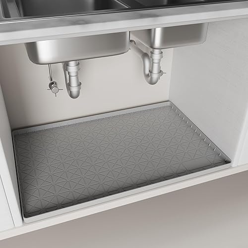 Tapis de protection sous évier de cuisine - En silicone imperméable - Antidérapant - Gris - 2 tailles (71 x 56 x 2 cm)