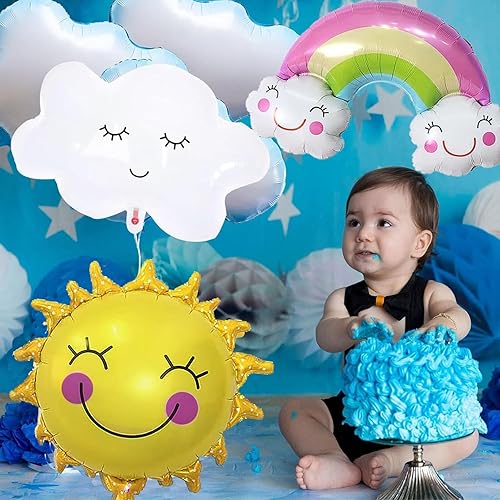 Lot de 4 ballons en aluminium en forme de fleur, ballons en aluminium, décoration d'anniversaire, pour fête à thème soleil, fête prénatale, fête d'été