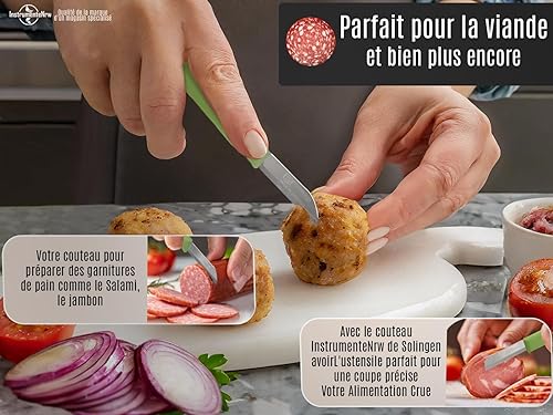 Couteaux à fruits Solingen Set Acier inoxydable Fabriqué en Allemagne Lames tranchantes pour couper les fruits et légumes (4, Long - Dentelé)