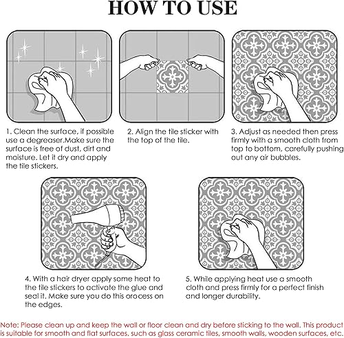 64 Feuilles Mural Stickers Autocollants de Carreaux, 15X15CM Imperméables Carreau de Ciment Adhesif Mural Sticker Autocollant de Carrelage pour Cuisine, Salle de Bain Maison