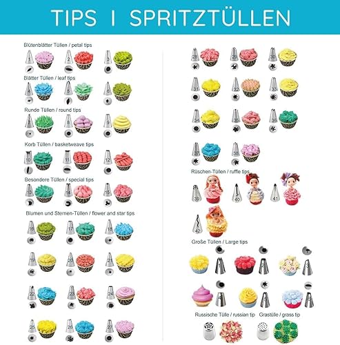 Wenburg Kit de Douille Patisserie Professionnelle - 75 Pièces - Différentes Poches A Douille Patisserie - Douilles à Pâtisserie avec de Nombreux Accessoire Patisserie y Compris E Book (Set Large)