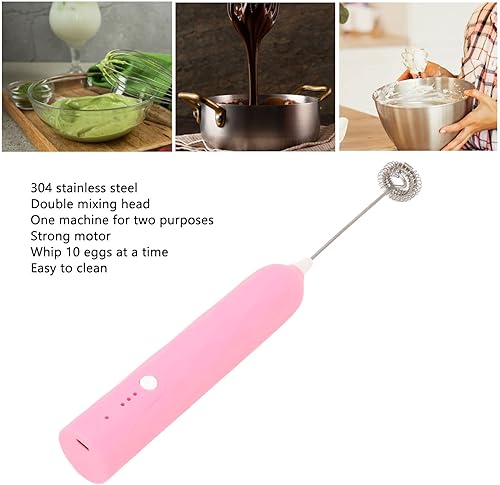 Mousseur à Lait, Petit Batteur à Oeufs Ménager Mini Mélangeur Multifonctionnel Agitateur Électrique à Main Mousseur Fouet Mousseur à Café au Lait sans Fil pour Café Chocolat Chaud (Rose)