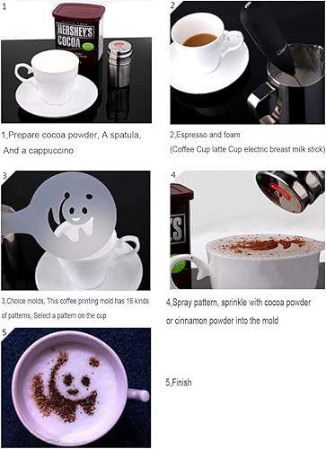 OKCLOD Lot de 16 pochoirs en mousse pour cappuccino, chocolat, café latte, expresso, café fantaisie, style de Noël, fleurs, arts, décoration blanc