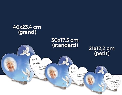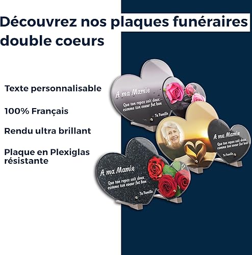 Plaque Funéraire Double Coeur Personnalisée - Colombe - Plaque funéraire Altuglass avec Textes Personnalisables, Photo - Résistante aux Intempéries et Traitée Anti UV (40x23,4 cm (Grand))