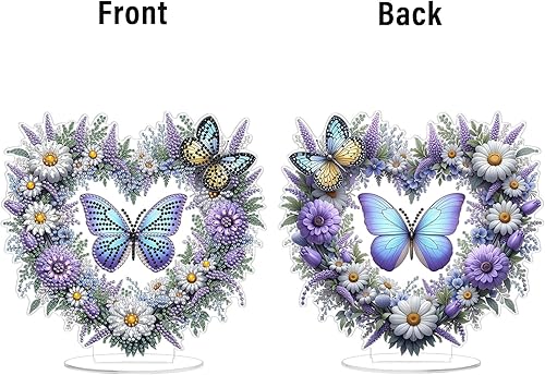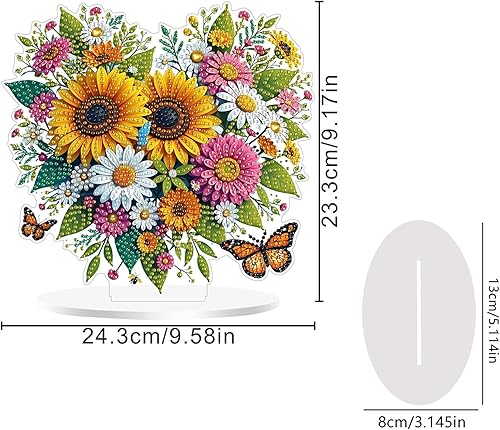 Peinture diamant 5D à faire soi-même - Décoration de bureau - Fleur d'animal - Décoration de table faite à la main pour chambre à coucher, bureau - Motif double face - 06 tournesol en forme de cœur