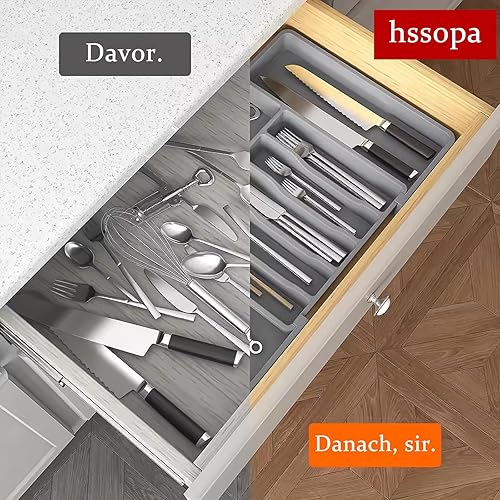 hssopa Range-couverts 2025 - Pour tiroirs - Organiseur de cuisine - Réglable - Extensible jusqu'à 48 cm de large - Noir