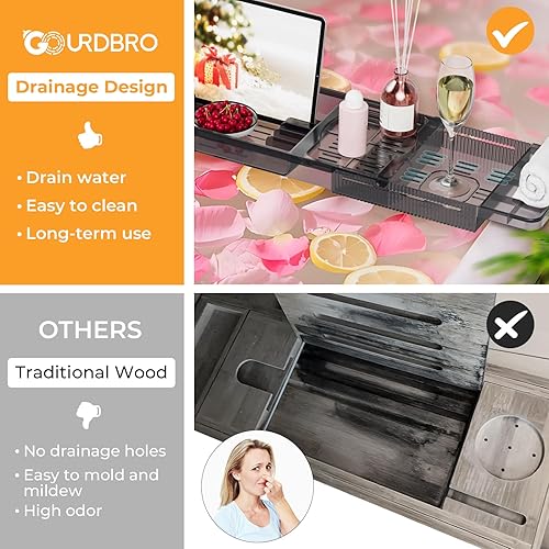 Plateau Baignoire Noir, Tablette Baignoire Plastique, Pont de Baignoire Extensible, Planche de Bain Pouvant Contenir Ipad, Coupe à Vin, Téléphone, Une Bougie, Arôme, Accessoires Spa (Noir)