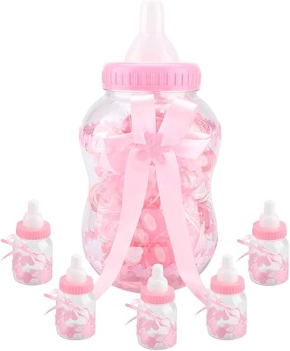Bouteilles de Bonbons de bébé, 30pcs Mini biberons Joli biberon avec Ruban et Ours, Bonbonnière pour des faveurs, des Bonbons, des confettis, Cadeaux d'anniversaire/Cadeaux(Rouge)