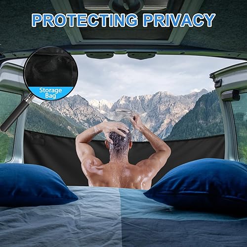 Rideau de Douche Réglable pour Porte Arrière avec Crochets Magnétiques et Écrans de Confidentialité Latéraux pour Mercedes Sprinter, Fiat Ducato et Ford Transit, 215 X 145 cm Brise-Vue Double Couche