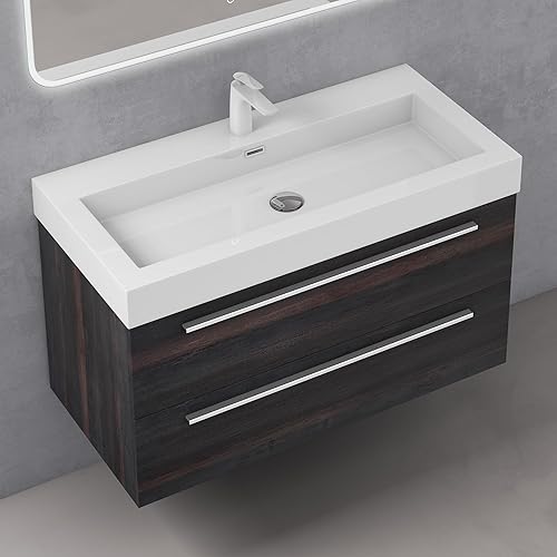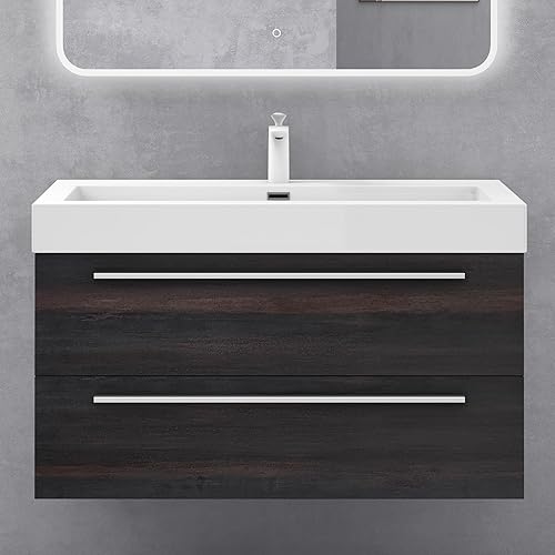 doporro Meuble de Salle de Bains Gris Noir Mat Ensemble de 2 Pièces Meuble Suspendu avec Lavabo 90 cm Design Quadratto