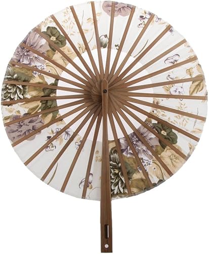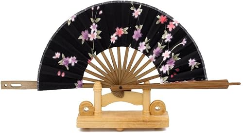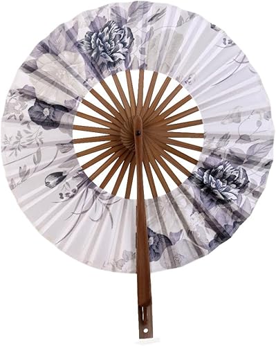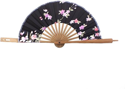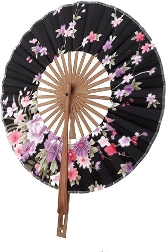 Tiuimk Éventail japonais Art déco rond en soie et bambou pliable pour femme, fête de mariage, décoration d'intérieur, noir