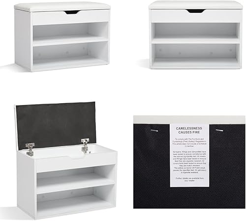 Mondeer Banc à Chaussures, Bois d'ingénierie, Blanc, 60 x 30 x 43 cm