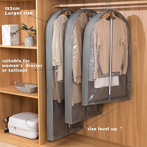 Foeska Housse de Rangement Transparente pour Vêtements, 60 x 10 x 152 cm, Antipoussière pour Vestes, Chemises, Robes de Soirée, Housse de Protection de Haute Qualité (2-psc grey)