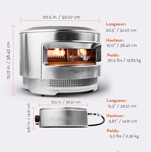 Solo Stove Four à pizza Pi, Bois et brûleur à gaz | Incl. Four à pizza d’extérieur, Structure pour feu de bois, Brûleur à gaz, Pierre à pizza (13 mm), Acier inoxydable, HxDia : 38,4 x 52 cm, 13,8 kg