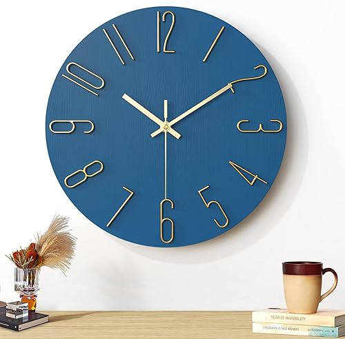 AUSYIWI Horloge murale, 30 cm, silencieuse, pour maison, salon, cuisine, bureau, décoration d'hôtel (bleu)