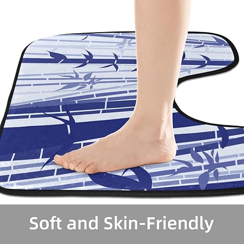 VAPOKF Lot de 2 tapis de salle de bain en forme de U et housse pour abattant de WC, tapis de salle de bain en flanelle douce et antidérapante, style scène plate