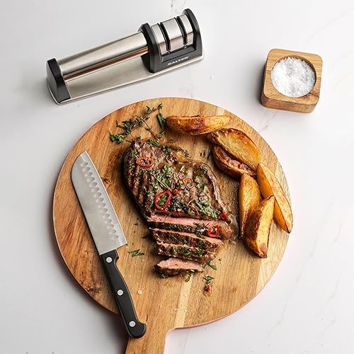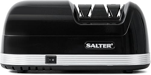 Salter BW11671B Aiguiseur à couteaux manuel, ventouse, usage particulier/professionnel, Twist & Lock, affûtage en 2 étapes, acier au tungstène, tige en céramique, compact, facile à ranger, noir