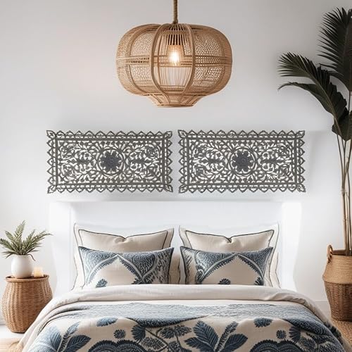 MARRAKESCH Décoration murale en bois 90 cm Grand ornement Bodhi Décoration orientale Shabby Gris