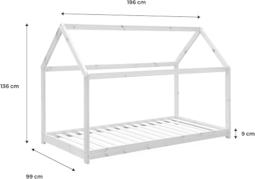 Alice's Home - Lit cabane Montessori. Bois Massif en pin Naturel Blanc - Tobias - sommier Inclus. 90 x 190 cm