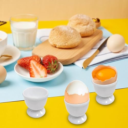 Lot de 6 coquetiers ronds pour 6 personnes - 4,8 x 4,9 cm - Blancs - Avec pied - Amusants - Blanc crème