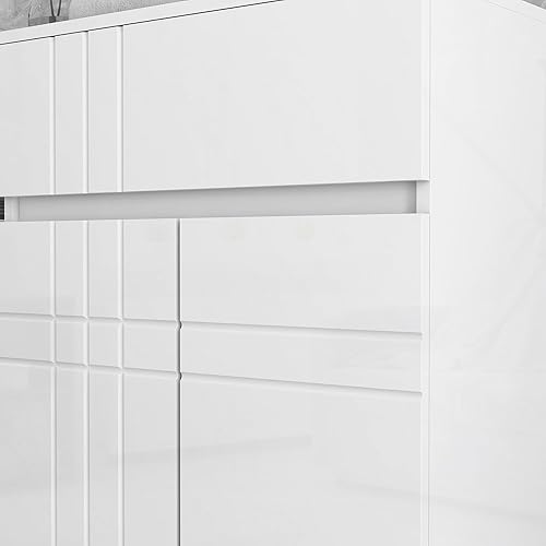 kleankin Meuble de Rangement pour Salle de Bain sur Pied, 1 tiroir, Placard et 2 Portes, étagère réglable, 60 x 30 x 80 cm, Blanc laqué