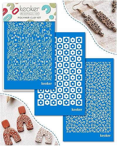 Lot de 3 pochoirs en soie pour argile polymère, pour impression sur argile et autres bijoux en argile et décoration de boucles d'oreilles