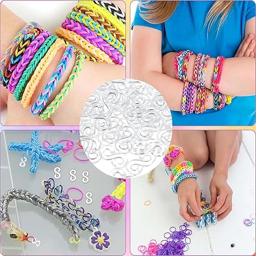 Lot de 500 clips de connexion en S - Fermoirs colorés en caoutchouc - Outil de recharge en S - Boucles en plastique pour connecter des bracelets Loom Band - Accessoires de bijoux - Transparent