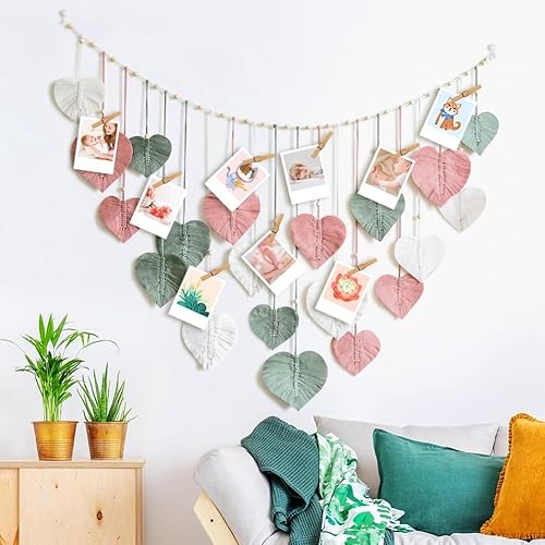 Willoghsa Grande Tapisserie Murale en Macramé avec Plumes et Feuilles de Macramé pour Chambre à Coucher, Salon, 35,5 X 55,1 Pouces