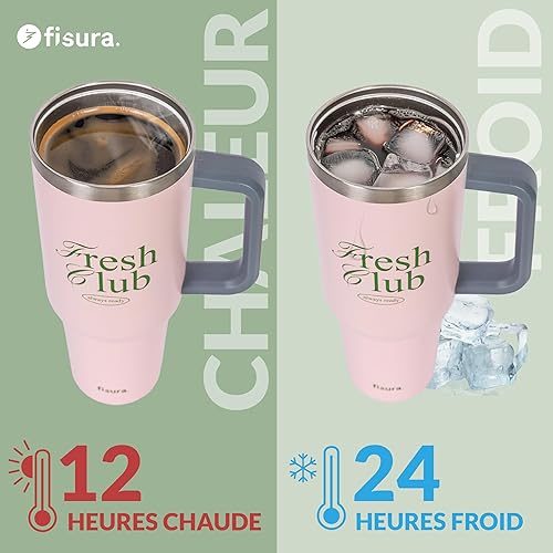 Fisura – Bouteille d’eau isotherme 1,2 L 'Hotter Than Last Summer'. Gourde thermique rose en acier inoxydable. Sans BPA. Conserve 24h le froid / 12h la chaleur. Avec paille intégrée. 9,8 cm x 27,8 cm.