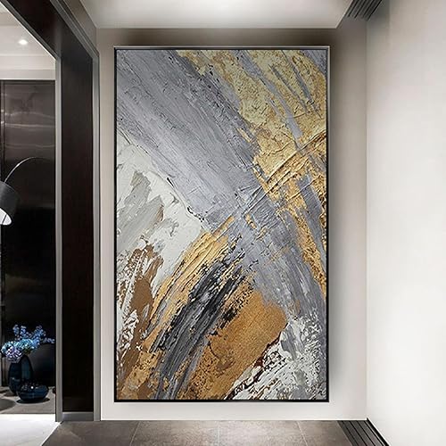 KmoNO Grand art mural abstrait toile peinture à l'huile feuille d'or texture épaisse ligne peintures décor salon maison garniture photos 40x80 cm (16x32 pouces) sans cadre