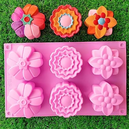 LINTRA Moule à Savon, 6 Cavités Moule Silicone Savon, 3 Motifs Floraux - Moules en Silicone pour Couler, pour Fabriquer du Savon, de la Gelée, des Glaçons, du Chocolat et des Gâteaux