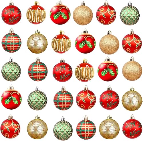 Lot de 30 Boules de Noël Blanches et Dorées en Plastique - Crochets de Suspension pour Guirlande, Couronne, Décorations d'Arbre - 6 cm