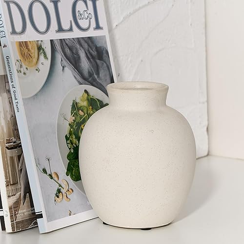 PORCER Vase rustique en céramique antique - 15,2 cm - Terre cuite - Style bohème - Pour la décoration de la maison, le salon, l'entrée, le mariage - Blanc