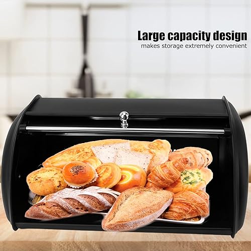 Kelepu Boite à Pain Boîte à pain grande Boîte à pain en fer Rangement du pain avec petite fenêtre visible Récipient à pain noir pour comptoir de cuisine et ferme 13,6 x 9,1 x 5,7 pouces (Noir)