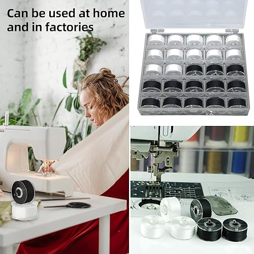 Lot de 25 bobines de fil à coudre noir et blanc - Accessoires de couture - Bobine de fil - Pour machines à coudre - Petit kit de couture avec boîte de rangement claire pour les débutants