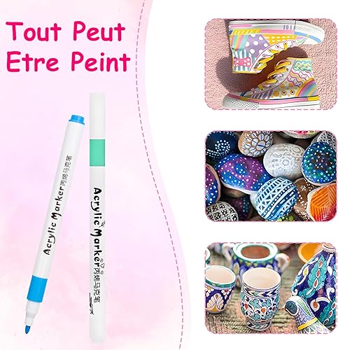 ZYNERY 80 Couleurs Marqueur Peinture Acrylique, Acrylique Peinture Stylo, Stylos de Peinture Acrylique, Marqueur à Plume de 1 mm pour Galets, Pierres, Papier, Bois, Verre, Toile, Céramique