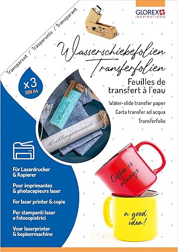 GLOREX 6 1241 700 Feuilles de Transfert à l'eau pour imprimante et photocopieur Laser, Format A4, Lot de 3 pcs