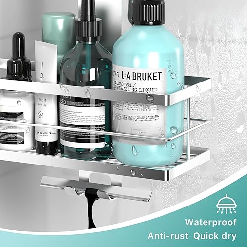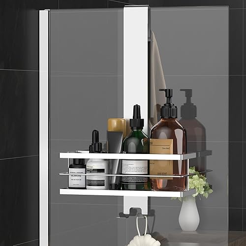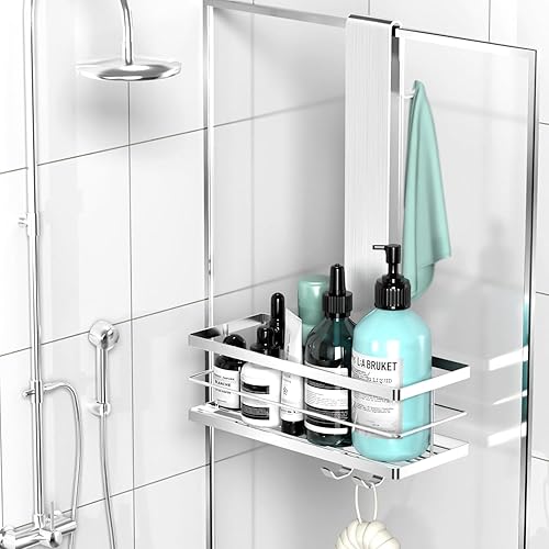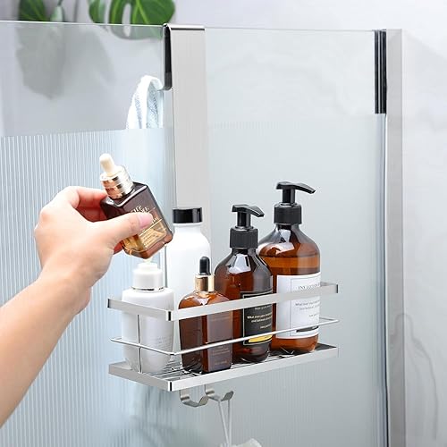 Kegii Étagère de Douche Suspendue, Étagère de Douche Antirouille à Suspendre sur La Porte, Rangement de Douche en Acier Inoxydable SUS304 Sans Perçage, Argent