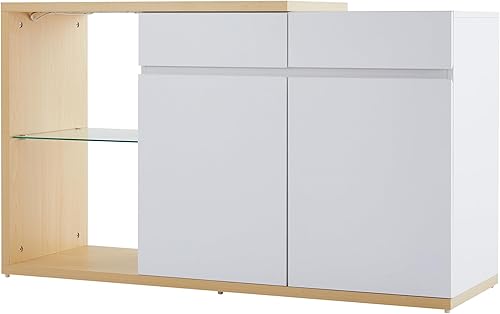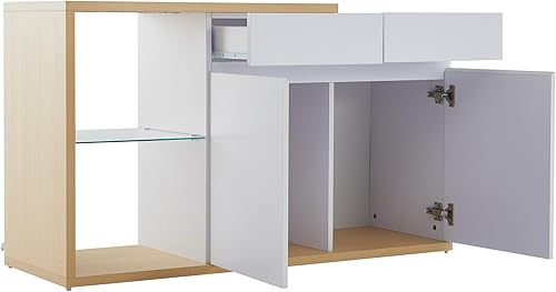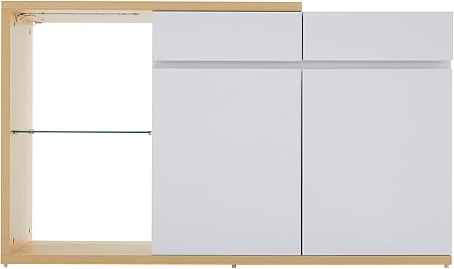 Winmores Buffet LED - Largeur : 120 cm - Multifonction - 2 portes - 2 tiroirs - Buffet avec éclairage LED (120 x 40 x 70 cm)